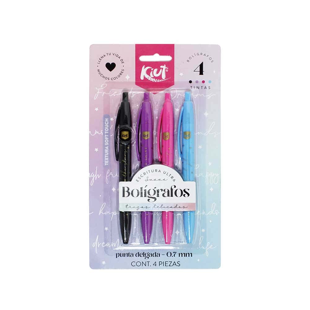 Bolígrafo Punto Fino Retractil Colores Fashion Blíster con 4 Piezas Kiut 556052