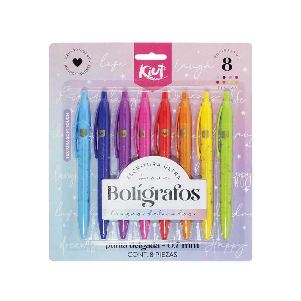 Bolígrafo Punto Fino Retractil Colores Fashion Blíster con 8 Piezas Kiut 557219